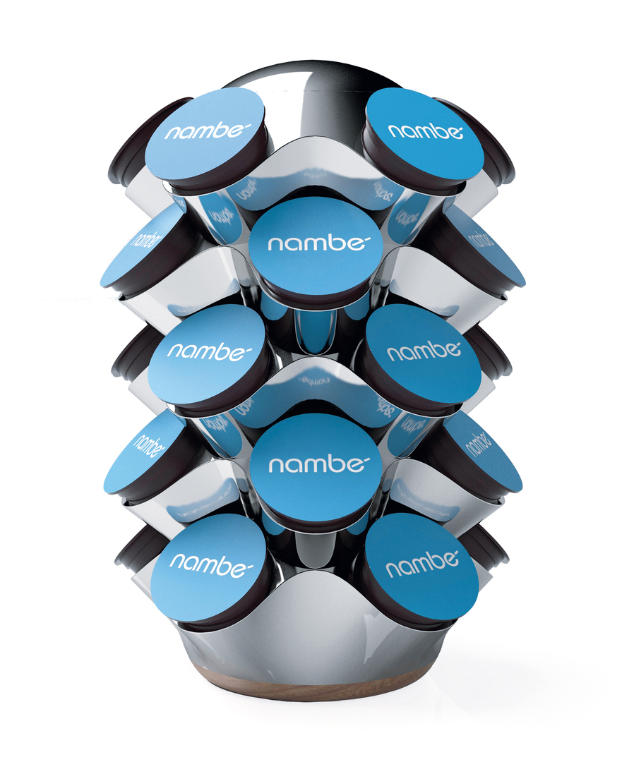The Ridge Coffee Pod Carousel is a stylish coffee pod organizer for up to 25 coffee pods. With a minimal countertop footprint, it delivers users the option to choose between different types of coffee. Its sculptural design conveys a sense of dynamic flow and lends it a pleasing tactility and feel. The harmoniously curved ridges create an enticing interplay of dynamic light reflections. The Coffee Pod Carousel comprises five levels that have been brought together with innovative laser welding.