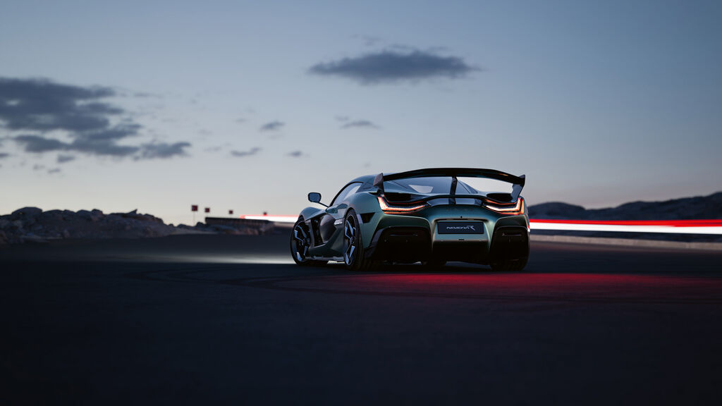 The Rimac Nevera R combines an aerodynamically shaped, flowing exterior design with racetrack-ready details, creating an appearance that expresses high performance and technical precision.