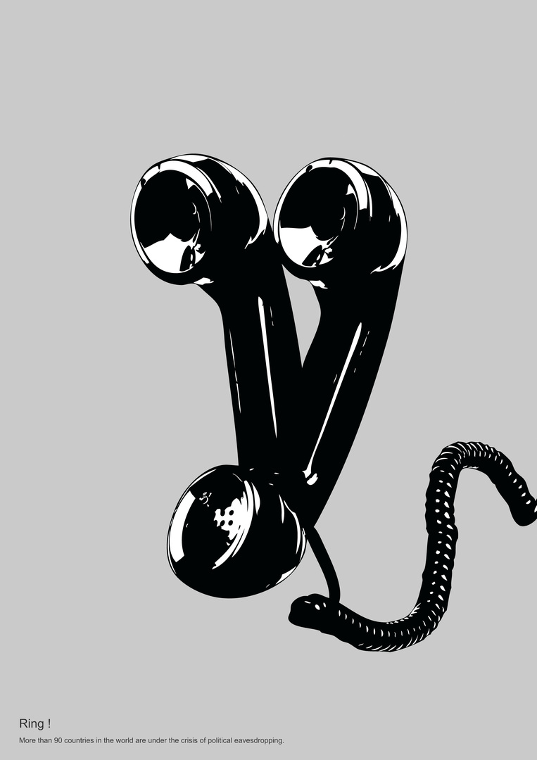 Using easy-to-understand and, in terms of craftsmanship, elaborate motifs, this poster points out gaps in the area of data privacy, especially gaps in protection against unwanted eavesdropping on private phone calls. It simply utilises two telephone receivers and one voice transmitter. The aim is to highlight the issue that our phone conversations are at risk of eavesdropping and no longer as private as might be expected.