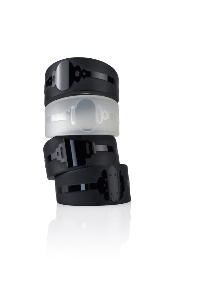 The contrast of matte and glossy surfaces along with relief-like differences in height create the impression of a ring within a ring in this unique piece of jewellery. Reflections reinforce this effect. The hand-crafted rings are made of natural agate or onyx, both very tough, scratch-resistant stones. At the same time, their low density gives the rings a certain lightness and makes them comfortable to wear.