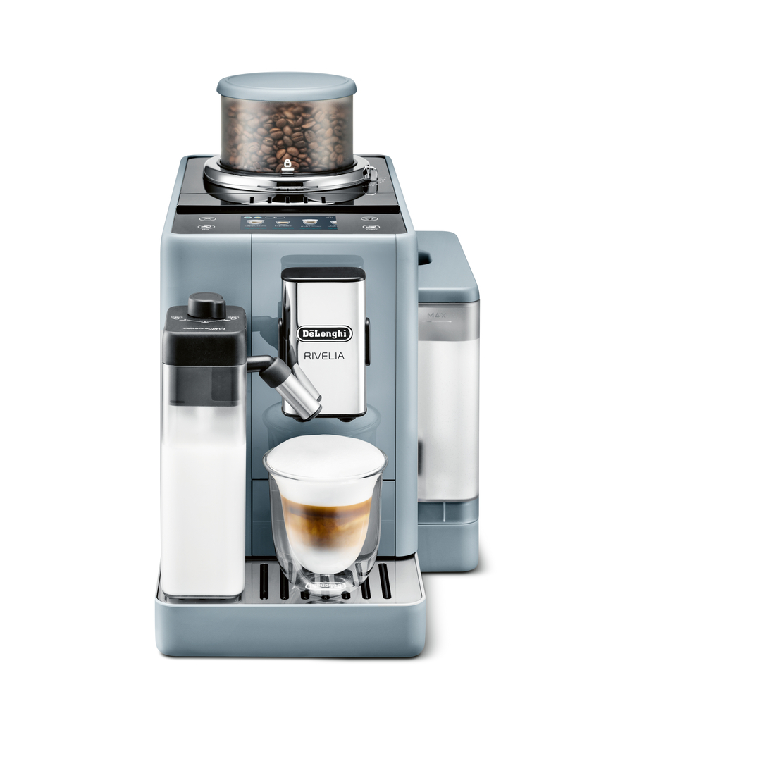 The Rivelia automatic coffee machine offers an extraordinary coffee experience and freshly ground coffee at the touch of a button. With the Bean Switch System, different types of coffee beans can be stored in separate containers and easily changed. The Bean Adapt technology and the Coffee Routine function adjust the brewing process to the selected beans and personal preferences. The modern, simple design approach with elegant lines and colours makes Rivelia uncomplicated and user-friendly.