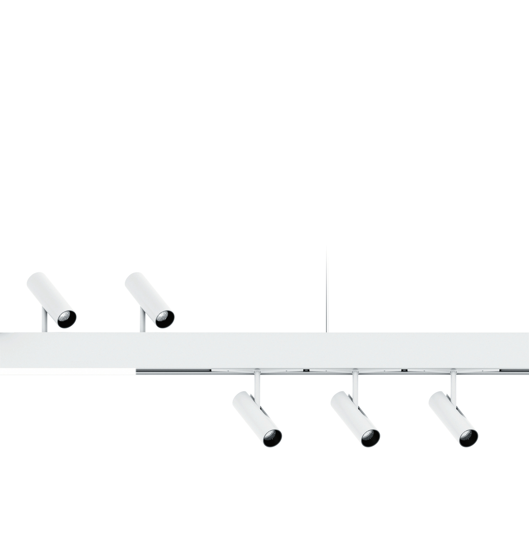 The design of this spotlight series was inspired by birds sitting on power lines, looking down at different angles. Similarly, the compact spotlights can be flexibly aligned. Their housing rotates up to 160 degrees vertically and up to 360 degrees horizontally. Robin can be mounted on top or below the slim track. The spotlights are available in black and white and come in three sizes, three powers and four light distributions from spotlight to wallwasher.