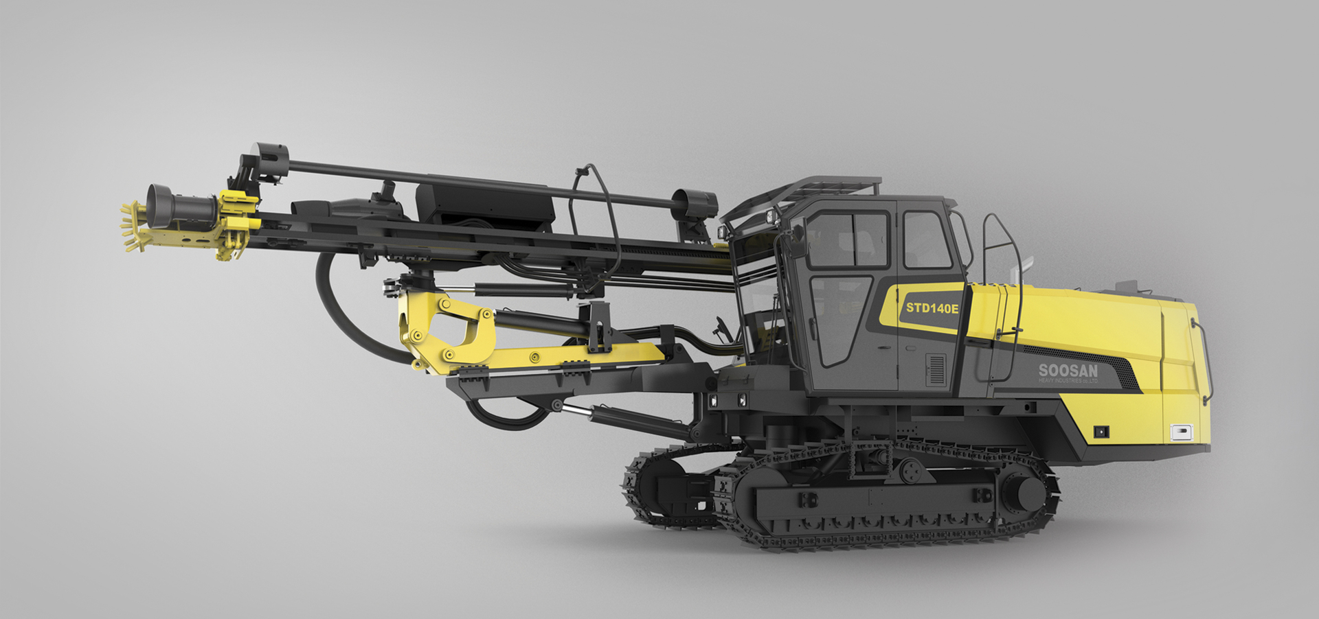 This SOOSAN Drill Rig is designed for drilling and surface blasting in mines, quarries, and construction sites. We adopted a dynamic and robust exterior design equipped with an ergonomically designed cabin structure to reduce operator’s fatigue. Every part of the drill rig is built with dynamics in harmony with the exterior's strong aesthetic identity that communicates a sense of high gear speed.