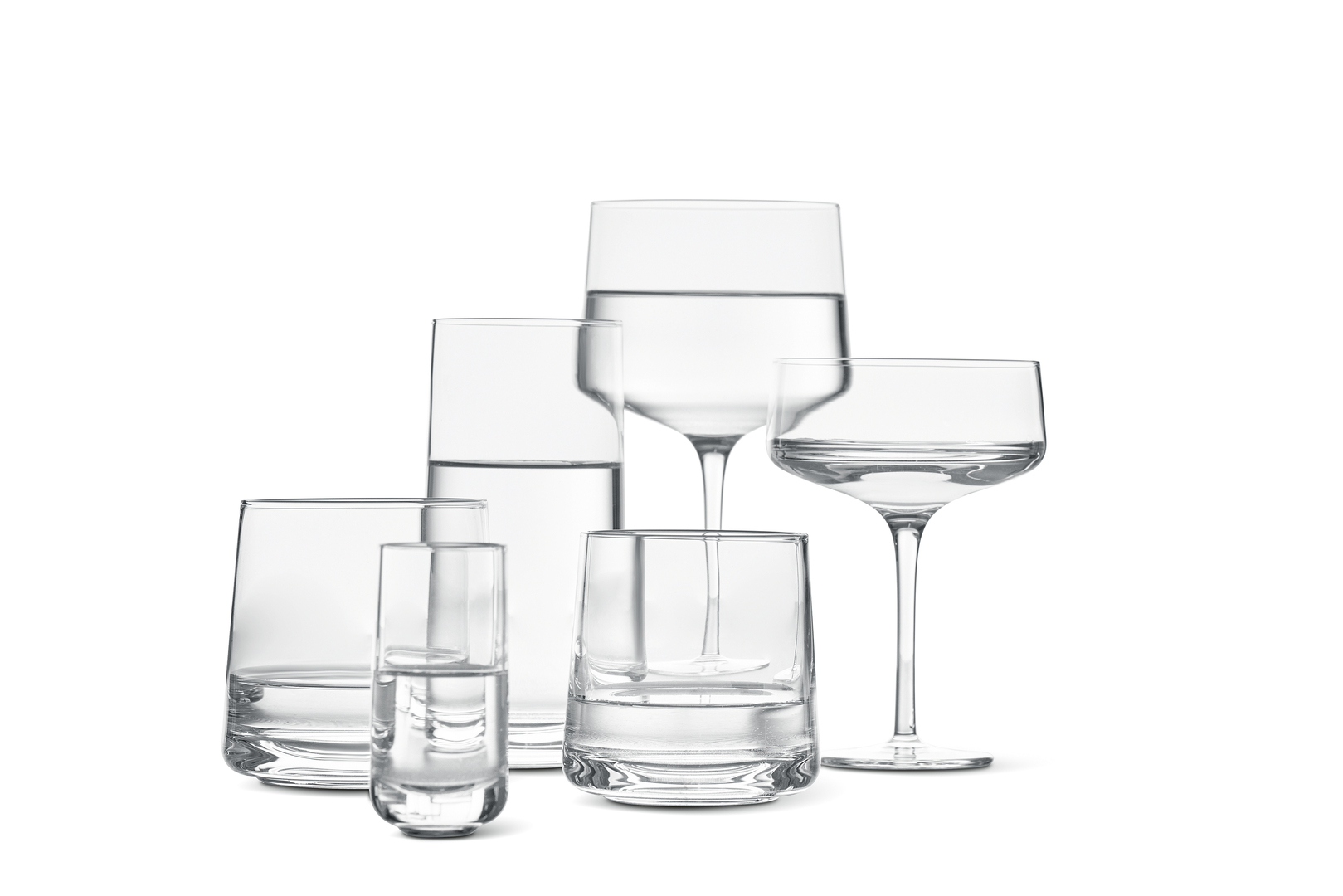 The ROCKS glass series comprises a selection of six different glasses created for serving and enjoying spirits, long drinks Champagne or cocktails in a stylish manner. The series consists of a range of crystal glasses, whose conical contour leaves ample room for the respective drink and its aroma. Four of the glasses feature a slightly raised, solid base, lending them firm stability. The champagne glass and a second cocktail glass feature a slender base that conveys a sense of sophisticated elegance.