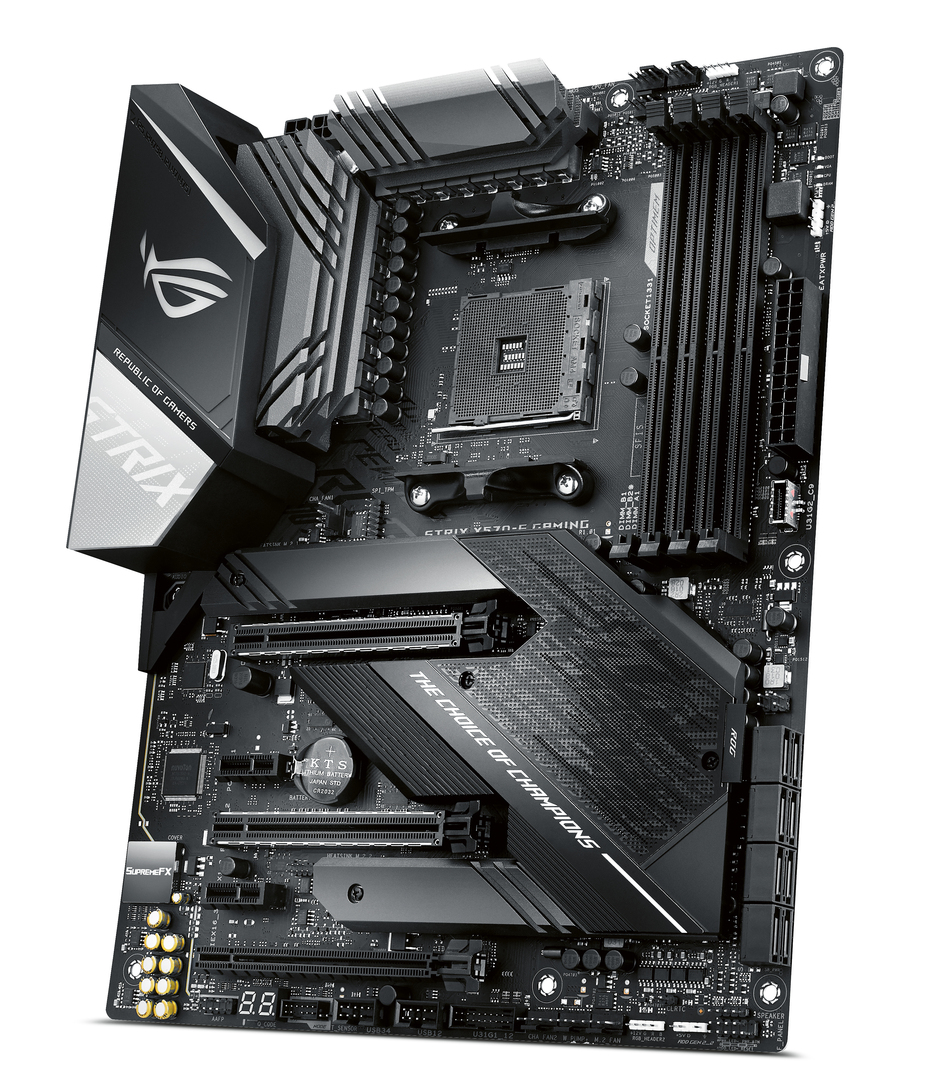 The new ROG Strix X570-E Gaming motherboard features an active PCH cooler and seven additional fans for efficient and quiet air and water cooling. A fast internet connection is ensured by 2.5G LAN and Intel Wi-Fi 6. Also on board are robust PCIe slots and dual M.2 slots, which are covered by special heat sinks and placed away from hot zones. Thanks to the node connection and BIOS flashback, building your own PC is a straightforward endeavour.