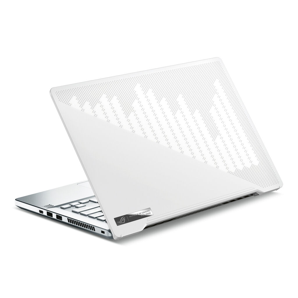 The 14" gaming laptop ROG Zephyrus G14 offers impressive performance in a portable size. Integrated in the lid are 1,215 mini LEDs that display animations, notifications, EQ visualisations and more. The durable magnesium alloy chassis has a fingerprint-resistant coating on the palm rest. When opened, the keyboard is raised at the back to facilitate typing and improve airflow.