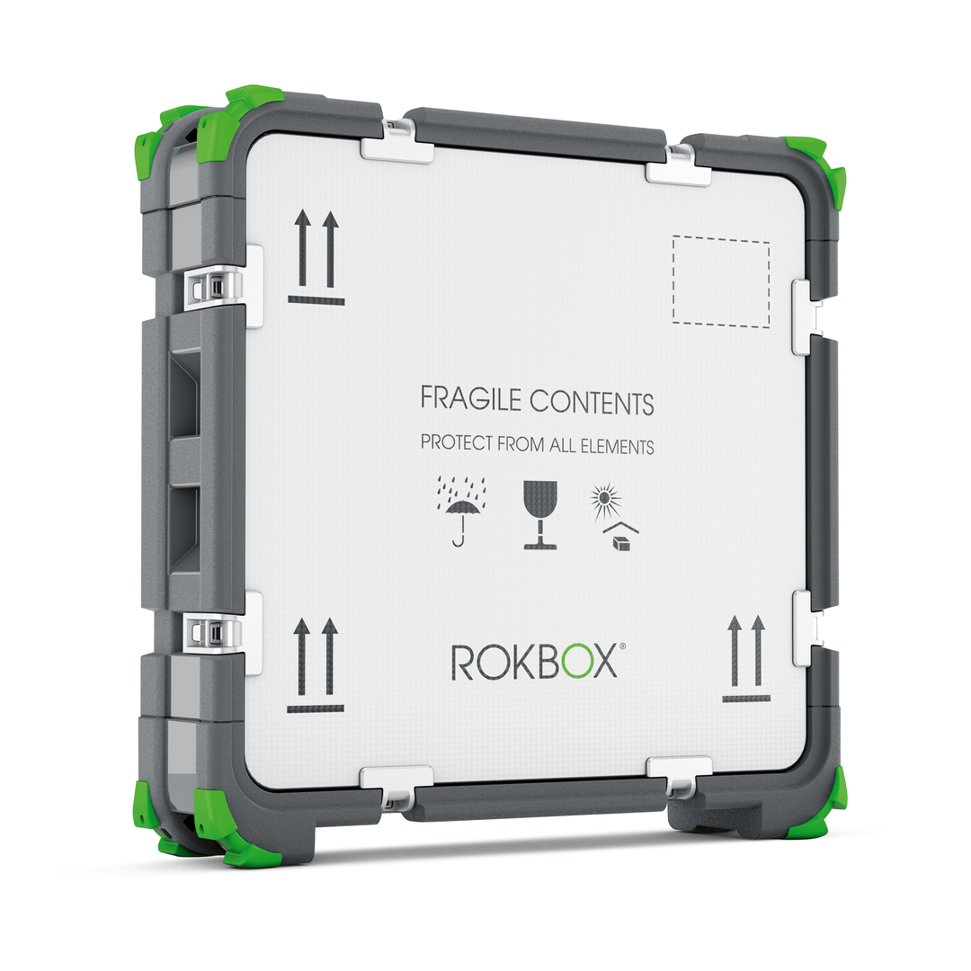 ROKBOX is a highly functional system that protects valuable goods in a simple manner without wasting a lot of packaging material. The cases can be transported easily and even franked for shipment. They serve to safely and securely protect works of art, while the cases do not require too much extra space themselves. This perfectly thought-out shipping and storage medium is very suitable for everyday use and allows self-explanatory opening without tools.