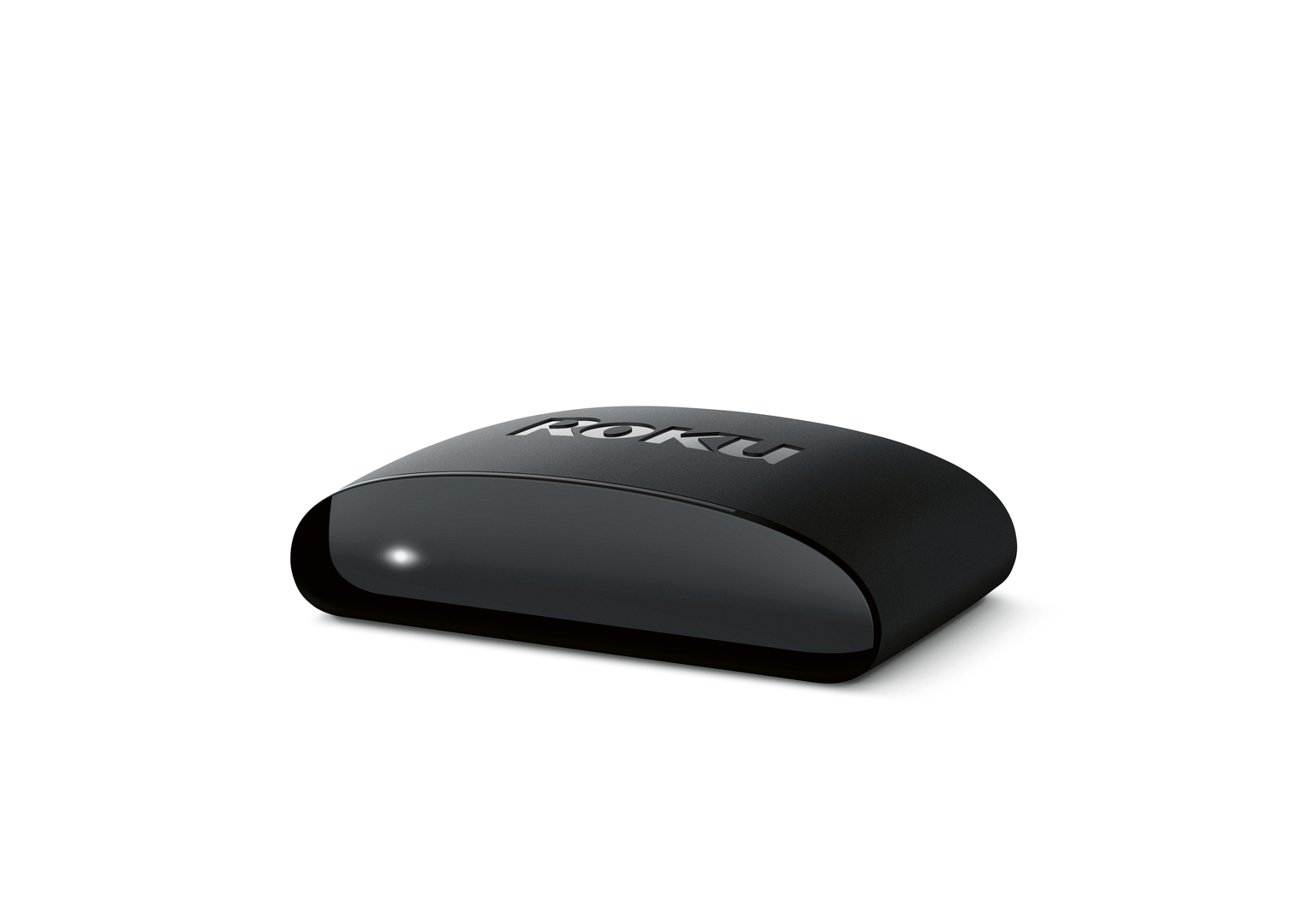 The Roku Express streaming media player is designed to receive HD TV content via the internet. It is so small and light that it can be attached to the side of a television or AV device with an adhesive strip. Thanks to its unconventional shape with a convex top, it nestles nicely against the respective device. The gloss bar on the front covers the infrared sensor, while the status LED is placed unobtrusively in the matt area.