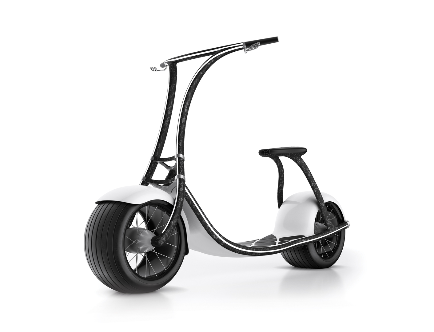 Zero learning curve is required to ride a Rolley Scooterson. The scooter is intuitive even for people who haven’t learnt to ride a bicycle and the rider only has to remember the position of the brake levers. There is no gear shifter, nor acceleration lever—the scooter knows how fast to go by analysing body movements. The rider first pushes off like riding a regular kick-scooter—this sets the scooter in gear one, the second kick shifts to gear two, then the rider simply sits for gear three. The scooter also automatically starts when the rider is within an active range. The contextual UI from the minimalist dashboard shows exactly what is needed at the right moment. Automatic adaptive headlights and mood lights increase the visibility of the rider on the road. Keyless operation and anti-theft function are integrated for peace of mind. Using A.I., the scooter adapts torque settings to match with remaining battery levels. This allows the rider to ride at peak performance without draining the battery before arriving at the destination. A.I. is also used to increase energy efficiency and safety based on riding patterns, rider profile and surrounding terrain. The ergonomics were tested to find the perfect universal dimensions that would work for any height and body measures to eliminate the need to adjust the seat or handlebar. Using components made of magnesium alloys and aerospace grade aluminium alloys, assembled on the world’s first full Carbon/Kevlar-reinforced polymer chassis designed for a scooter, the composite body is three times lighter than any other scooter in the same form-factor. When it comes to aesthetics, all curves and proportions have well-studied ratios and the decorative patterns are mathematically generated for a clean and organic look. Red Dot Award: Design Concept | Ready to Launch | Mobility