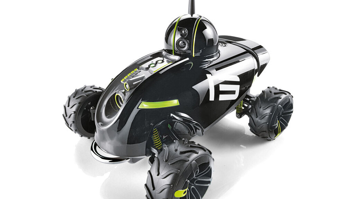 The Spy Tank is an app-controlled vehicle with a night vision mode that can be navigated with Apple devices such as the iPod, iPhone or iPad. It transmits audio and video signals and generates its own Wi-Fi wireless connection to the control device which is protected from frequency interference. The wireless range lies between 30 to 60 metres, depending on the number of physical obstacles between tank and control unit.