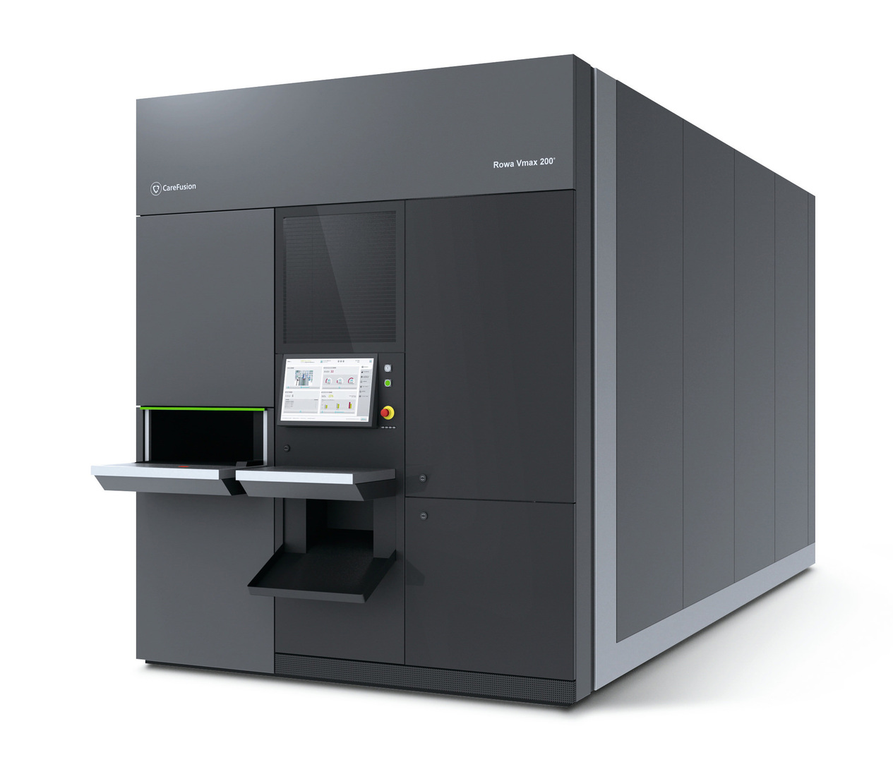 The Rowa VMax 210 storage and dispensing system automatically sorts medications in the pharmacy and dispenses them at a sales counter within seconds. The system makes use of all available space for storage and situates packs next to each other with great precision. In spite of its high speed, the unit operates almost silently. The innovative HD multi-picking technology enables the safe handling of several packs simultaneously. The system can be individually adapted to any pharmacy layout.