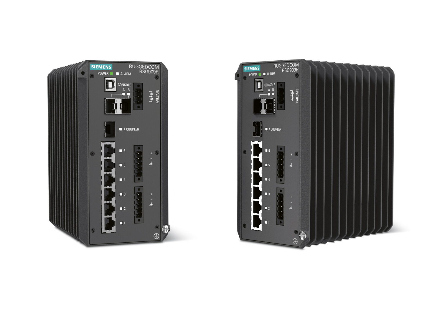 The Ethernet switches of the Ruggedcom RSG900C/R product series are used to build multifunctional industrial networks for mission-critical applications. The innovative industrial design is characterised by a compact housing, which enables the operation of high-performance components in extreme temperatures as well as easy installation in small cabinets and panels. Thanks to the modular design, the different products from the Ruggedcom portfolio can be combined with one another.