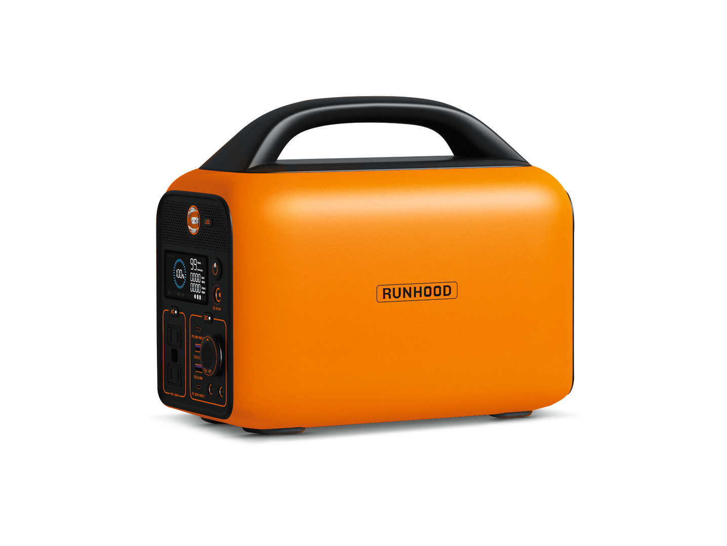 The RUNHOOD T600 adds an optical element to the appearance of an outdoor power supply unit, an element which such devices do not usually have. The rounded edges and the clean colour combination of orange and black lend it a sense of engaging vitality. The operation of the device is intuitive and simple, and it has been geared to respond to user needs and habits. In addition, it allows a wide range of different applications.