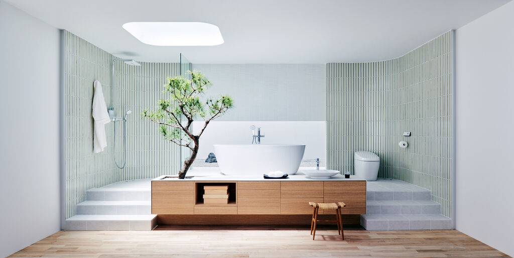 In Japan, it has become a coveted artistry to be able to skilfully create an attractive interior environment with limited space. That is also the aim of this interior design for bathrooms. The sanitaryware collection S600 LINE by INAX combines the traditional Japanese use of space with modern sensitivities at a high level. Through a clever arrangement of the various products that appear like works of art, the interior design is, to a large degree, responsible for creating a relaxing and invigorating environment.