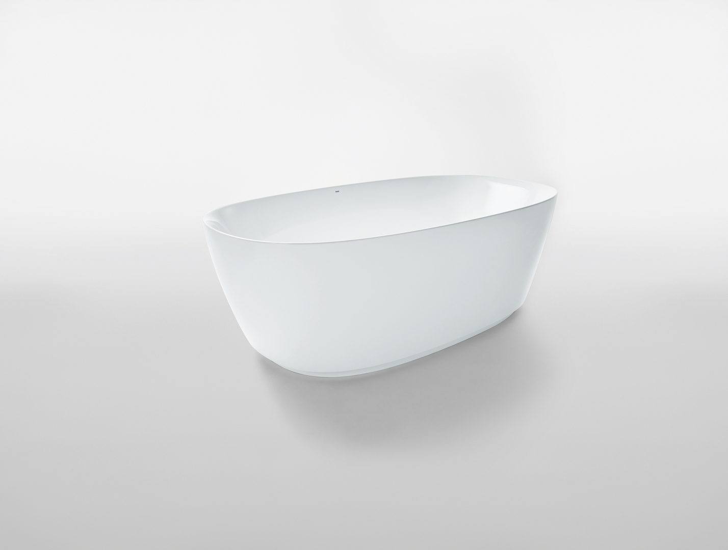 The S600 bathtub series is inspired by the idea of fusing architecture and humans. This aesthetic philosophy of “Humanitecture” is clearly reflected in the appearance of this free-standing bathtub. Its narrow base merges directly into the oval body, with the forms blending into a unit that emanates harmony and tranquillity. Its height of only 540 mm not only makes it easier to climb in and out of the tub, but also reduces water consumption. The pattern on the floor both serves as a decorative element and provides grip for enhanced safety.