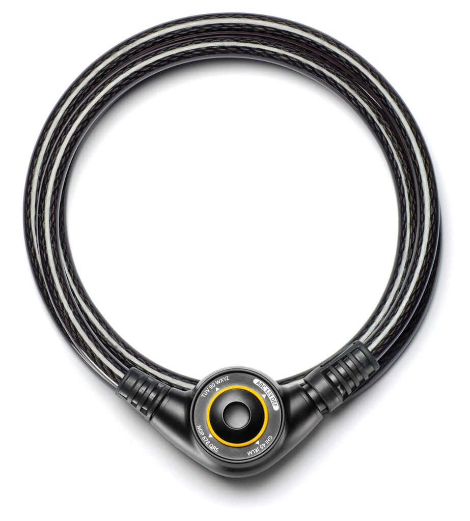 Instead using of wheels or dialers, this cable lock opens via a joystick-like button that can be moved in four directions – up, down, left, right – in any desired sequence. The numbers and letters around the button enable password selection in any length and easy-to-memorise by meaning. The unlocking is straightforward and can be done with one hand, making the lock suitable for operation in the dark and also catering to the needs of users with disabilities.