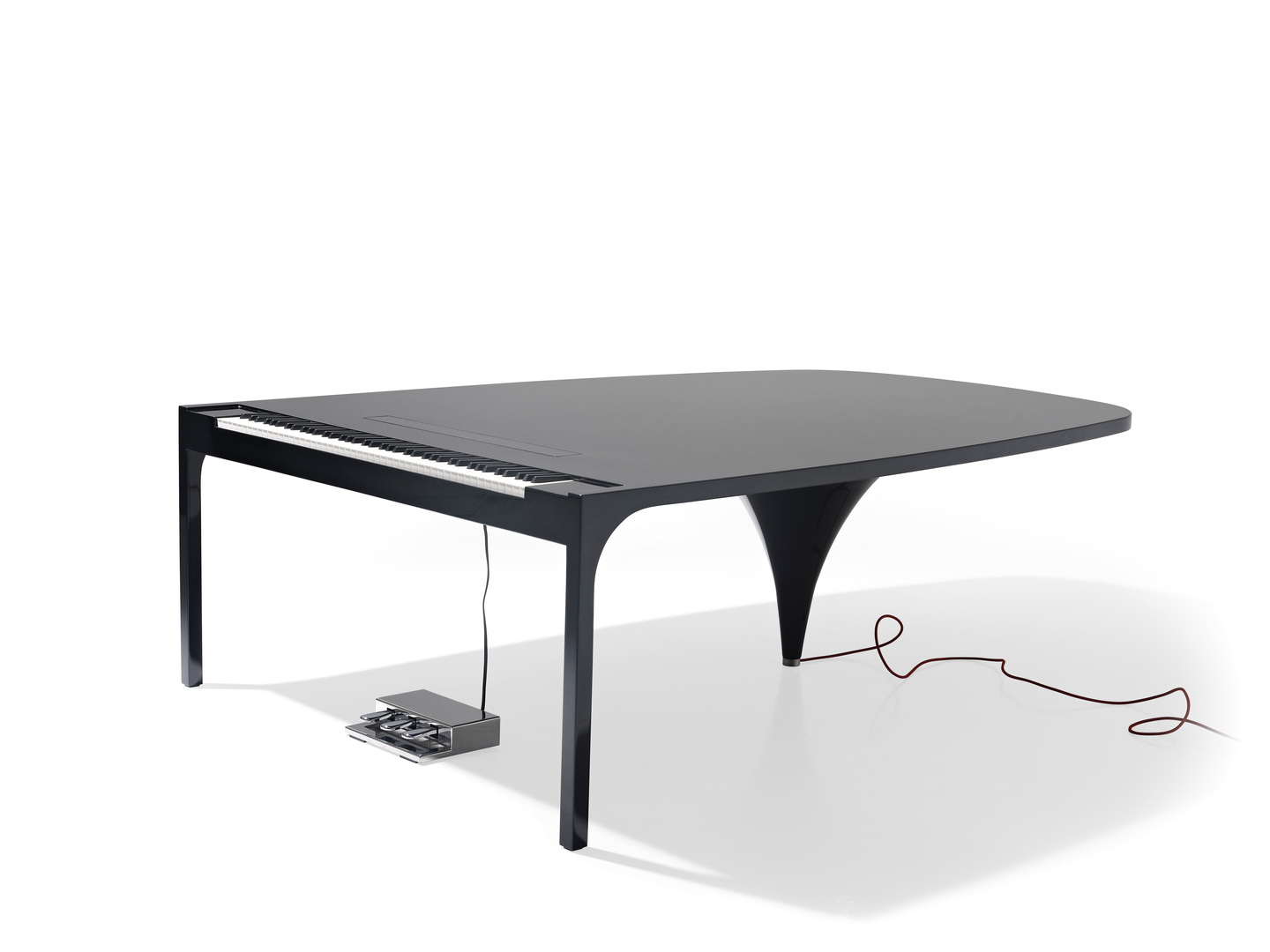 The idea behind this minimalist electric piano is to combine the musical and social aspects of a piano. Compared to conventional electric piano types, this musical instrument also offers the advantages of a piece of furniture: adopting the function of a table, it serves to accommodate the player’s audience. The SAM piano – a name that stands for “save a musician from being lonely” – thus merges musical performance and social gathering in a highly original way.