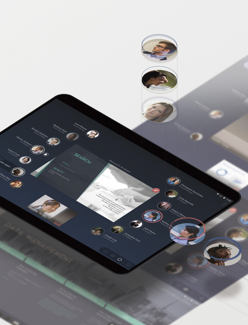 In the full group discussion mode, all participants sit around the table and discuss equally. Otherwise, participants leading the discussion are exposed on the screen, which ensures a smooth operation of a question and answer session. This solution encourages users to participate through real-time participation analysed data. Participants’ performances are presented in real time and determines on three levels through quantitative analysis based on their speaking time and the participants’ writing tools usage. Samsung SDS Enterprise Conferencing perfectly demonstrates how people can better enjoy attending virtual meetings.