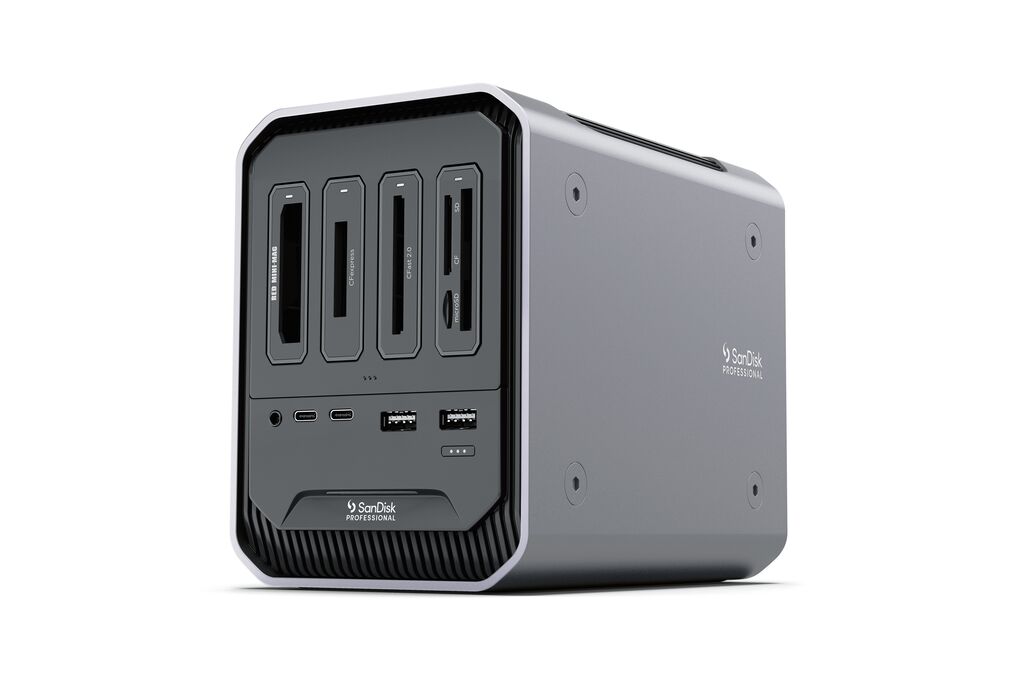 SanDisk Professional Pro-Dock 4 is designed for creative professionals who want to transfer their videos or digital photos to their editing station at Thunderbolt speeds. It provides space for four separate flash media products that can be accessed simultaneously. The media readers are made of aluminium and have a moulded handle for easy removal. The dock combines different materials and surface textures to achieve a unique character.