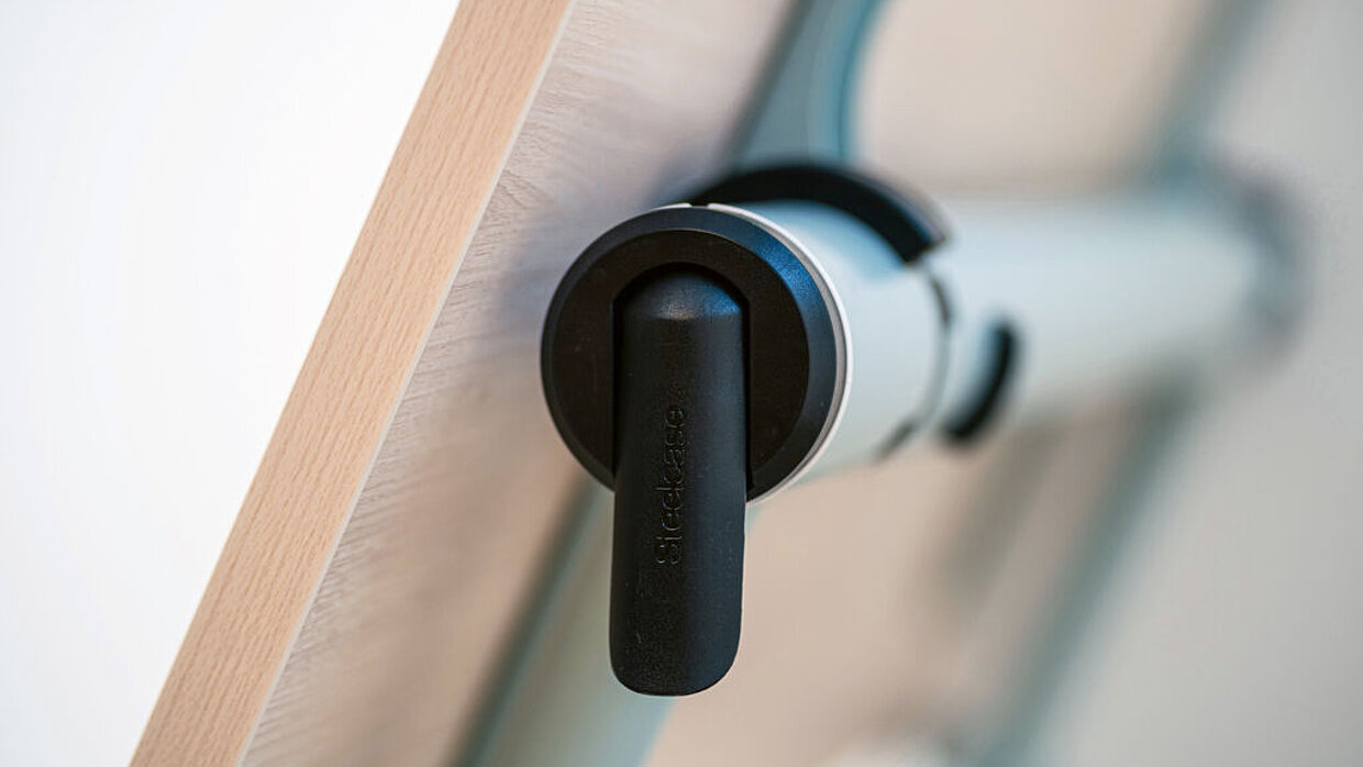 Satellite is an upholstered swivel chair that fits particularly well into an office environment. Its elegant form, deliberately designed to avoid bulky sides, plays with the shape of a circle – a fact that becomes apparent when it is viewed from above. A special feature is the integrated, rotating accompanying table which is also circular in shape. It can be swivelled by 180 degrees around the chair, thus making it suitable both for left- and right-handers. Satellite’s base consists of three chrome-plated legs.