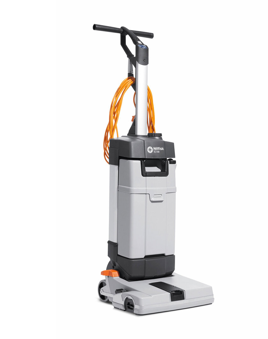 The SC100 is an upright scrubber dryer for cleaning smaller areas. With its low scrubbing deck, the machine can also access corners that are otherwise hard to reach. All cleaning functions can be controlled using the self-explanatory symbol buttons on the handle. Operation can be stopped immediately by bringing the machine into an upright position. The robust aluminium frame is particularly durable, and the well accessible tank can be cleaned easily and thoroughly.