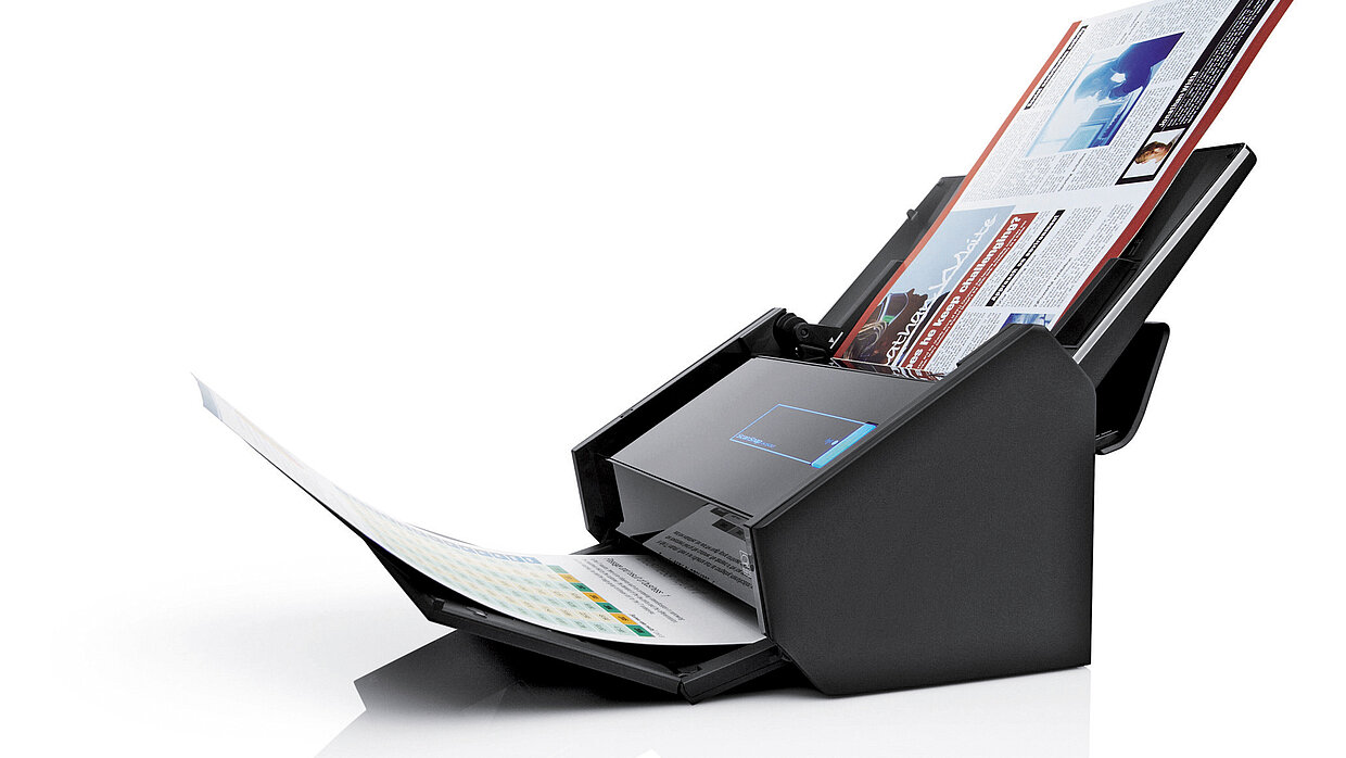The ScanSnap iX100 is a portable document scanner with Wi-Fi connectivity and a built-in rechargeable battery. Documents are scanned wirelessly to smartphones, tablets or computers and can be processed, stored or shared via cloud services. The scanner weighs merely 400 grams and needs only 5.2 seconds to scan a DIN A4 page in colour. The battery is charged via USB and allows up to 260 A4 scans with a single charge. In this way, the scanner makes work more productive and facilitates information exchange.