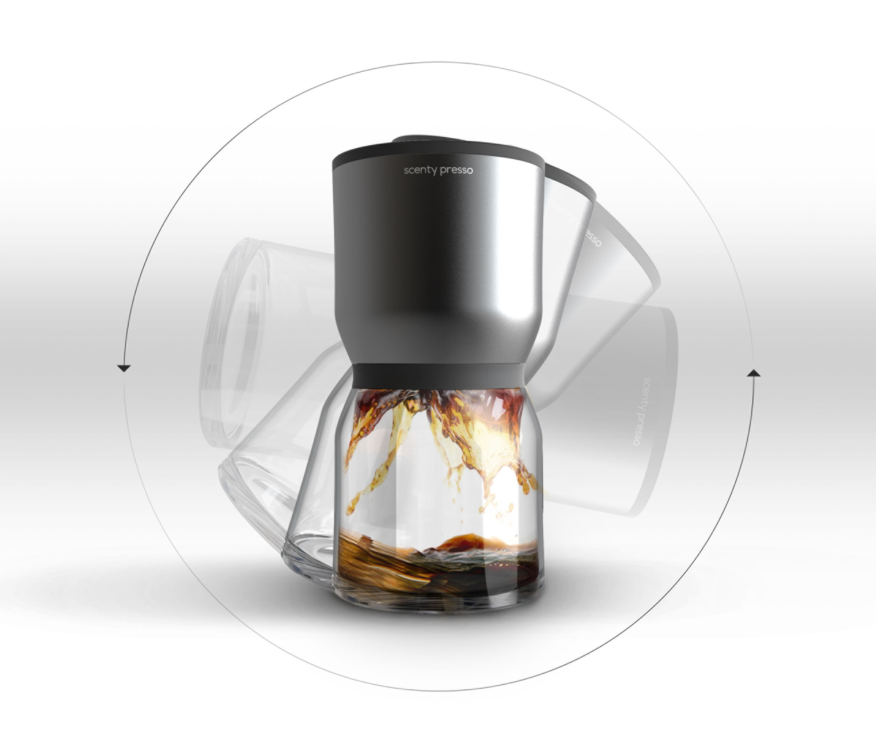 Shaped like an hourglass, Scenty Presso is a coffee maker designed to transform the way people experience and brew coffee. The process begins with the glass end on top. Users add coffee grounds and water to a chamber on the opaque side, before reversing their positions with the flick of a wrist. Just like sand in an inverted hourglass, ready-to-drink coffee then trickles down into the glass end. This is achieved through an innovative evaporation technique that filters the water through the coffee grounds.