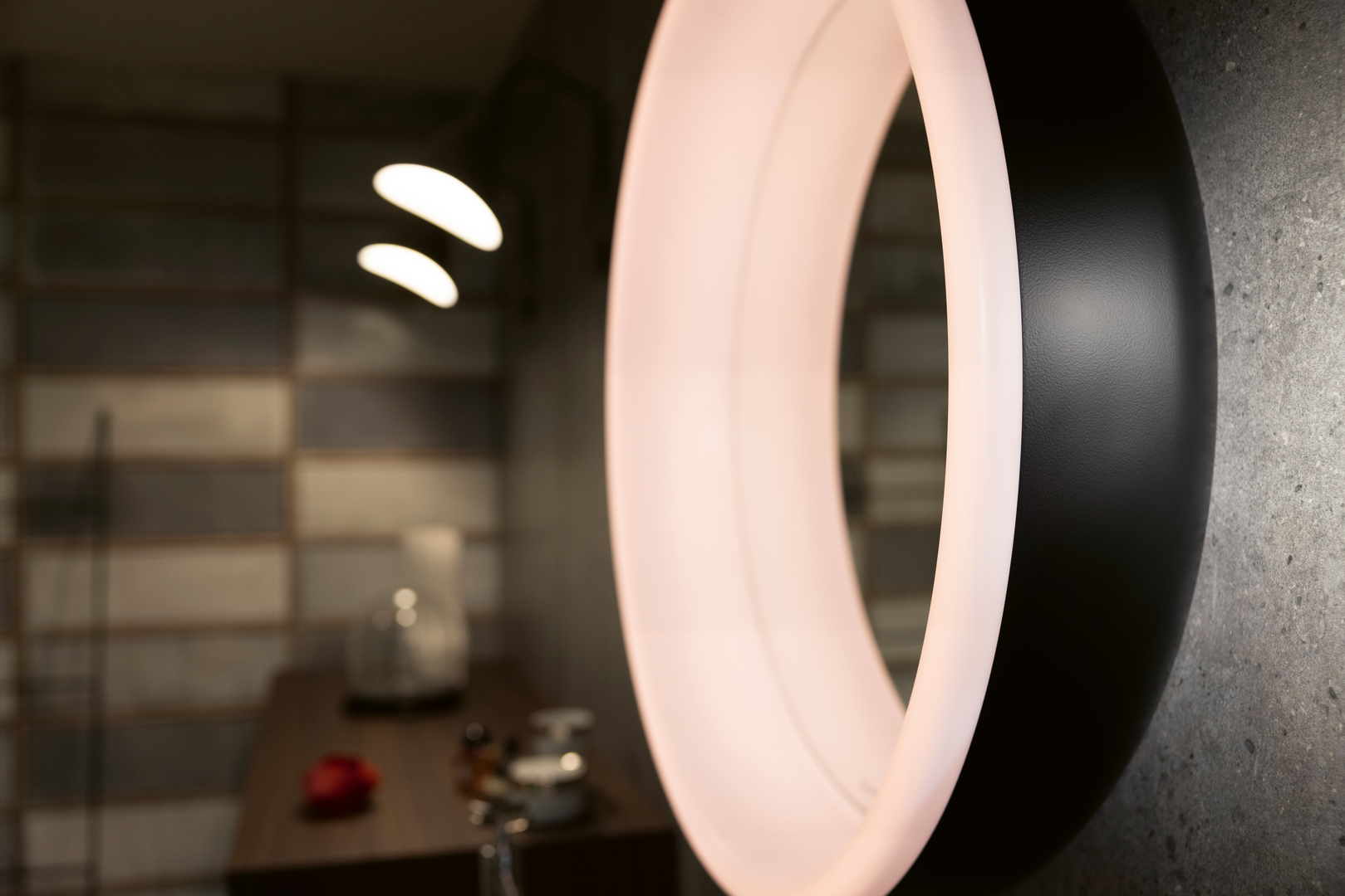 The round Schneider LUNE illuminated mirror stands out due to its depth of about 15 cm. At the touch of a button, its continuously dimmable light ring changes between warm light (2,000 kelvin, approx. 30 per cent intensity) and cold light (6,500 kelvin, 100 per cent intensity) within 2.5 seconds. In addition to the puristic form and the variable lighting effect, the jury was particularly impressed by the indirect, glare- and shadow-free lighting of the mirror, which offers optimal conditions for shaving and make-up. The illuminated mirror is suitable for both surface and recessed mounting.