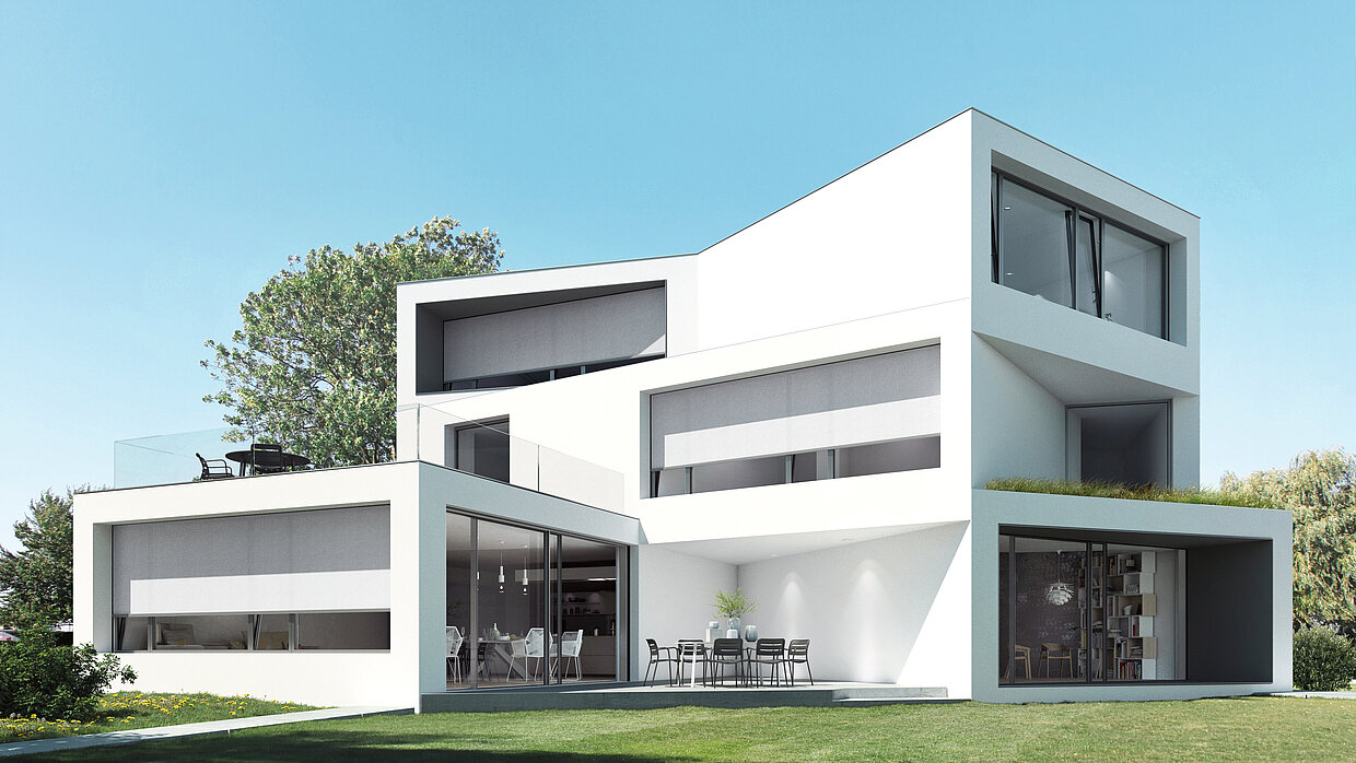 The design of the Schüco ASE 67 PD Panorama Design sliding system is both purist and comfortable. A level threshold ensures barrier-free access and the outer frame can be integrated into the walls of the building. The slim profiles give a high degree of transparency. The system envisages sliding elements with a size of up to 3,200 mm × 3,000 mm and a weight of up to 400 kg. A novel mechanism in the interlocking section allows the elements to be locked even when open.