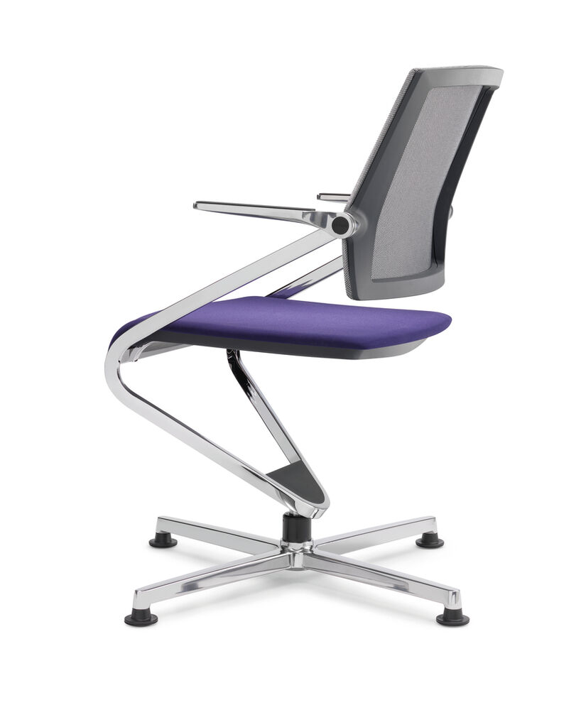 All design elements of the scope conference chair show a consistent signature style. Concise and strict lines dominate with rather rectangular sections. Consequently, the frame is bent from an elegant rectangular pipe, with this pipe distinctively curved at both the vertical and the horizontal edges. This results in an attractive, uninterrupted flowing line. The armrests are constructed from die-cast aluminium with a brushed finish. They are positioned flush with the back mounting base. The TPU inlay provides for a comfortable and relaxed armrest.