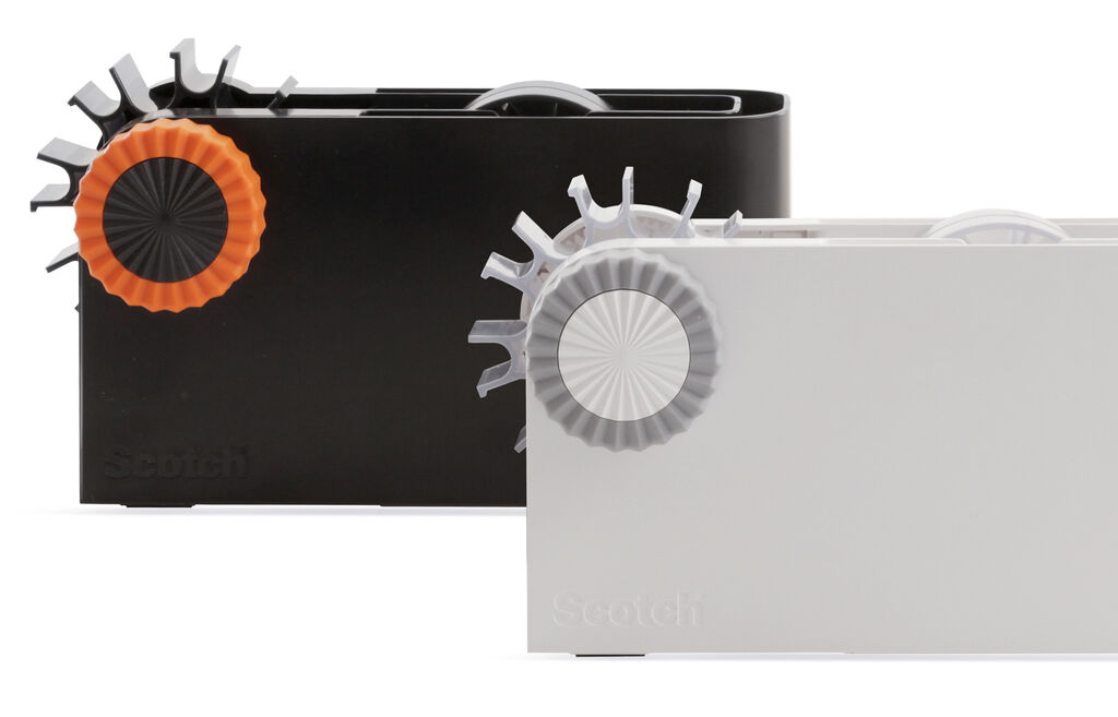 This combination of desktop organiser and tape dispenser is extremely modern and practical. The simple and exciting use of form allows it to fit harmoniously into the office environment. The both functionally and ergonomically well-engineered design with its rotating cogged wheel to dispense the tape is fun to use and childproof. In addition, thanks to its colouring, the Scotch Tape Dispenser provides a positive feel.