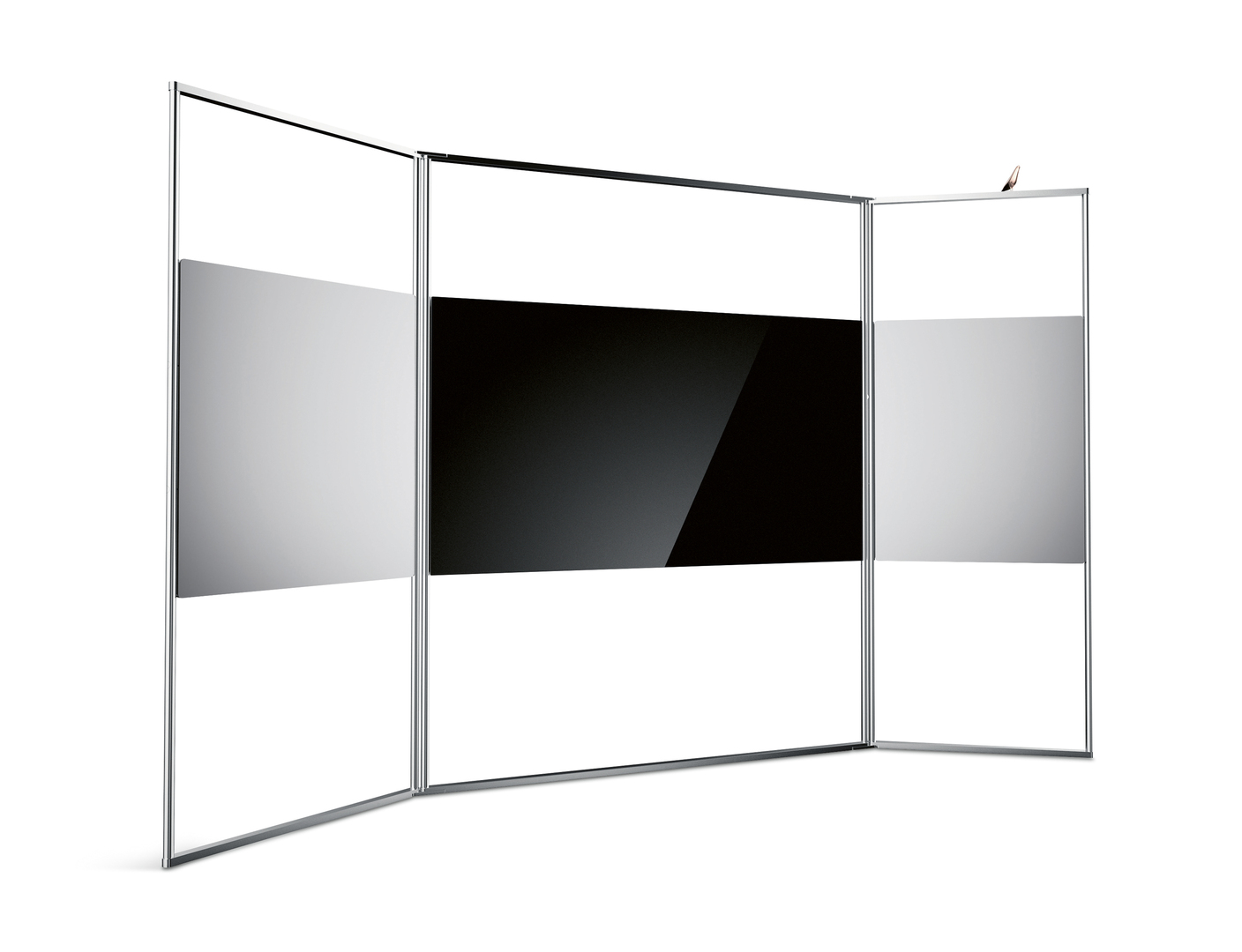 The design of the Screen TV is inspired by a paravent screen, a traditional Chinese piece of furniture. The OLED TV can be combined with folding elements and used like a room partition, for instance to conceal certain areas or to redivide spaces in a room. A sound system consisting of array speakers is situated on both sides of the ensemble, offering an intense sound experience.