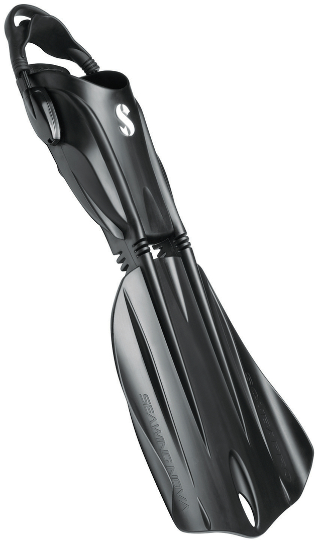 Visually, the Seawing Nova is all about strong, dynamic, flowing lines, drawing inspiration from marine animals. The main technical feature is the blade of the fin, which pivots on a living hinge with built-in stoppers instead of flexing along the length of the blade, thus always ensuring an ideal angle of attack. The blade is separated from the footpocket in order to eliminate what is usually a dead section of blade, creating the Clean Water Blade system that considerably reduces drag.