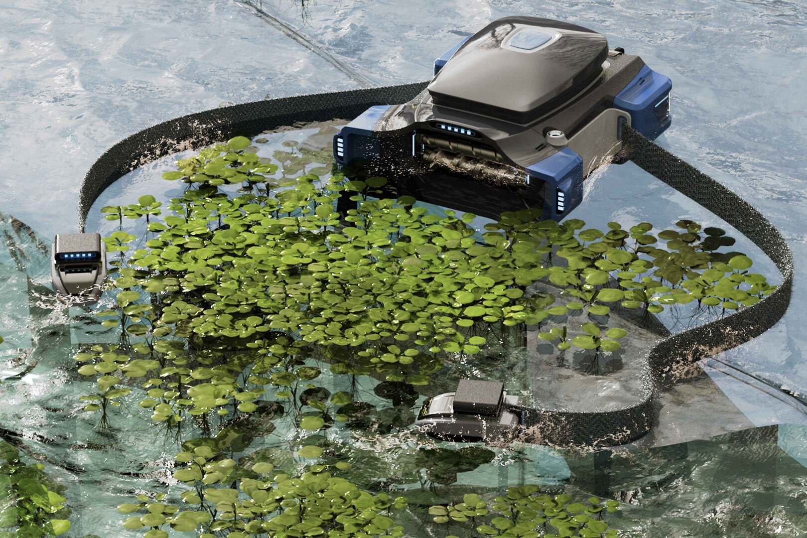 Domestic water discharge creates ideal conditions for algal growth. Seaweed Hunter’s mission is to solve the problem of algae blooms. When satellites detect algae patches, special boats will drop off Seaweed Hunters, the number of which will depend on the level of pollution. With their long arms, the robots will encircle and collect tangled seaweed. After being placed in a set position, they set ropes around the area. Two robots connected by electromagnets at the end of each rope will close a loop and contract the rope, stirring the algae into the machine. To empty the net of compressed seaweed, simply turn on the device.