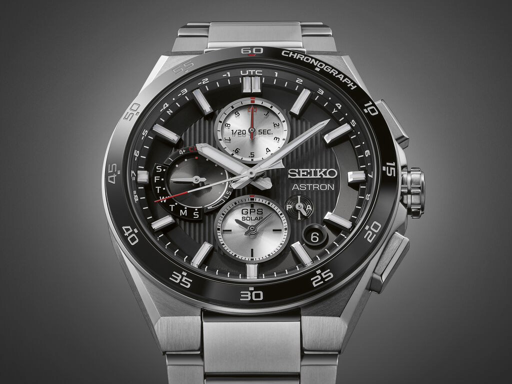 Designed with precision in mind, the striking Seiko Astron GPS Solar Dual-Time Chronograph 5X83 receives time data directly from GPS satellites. An intelligent solar charging system draws energy from both sunlight and indoor light to power the precision movement. The stopwatch measures time in intervals of 1/20th of a second, while luminous hands ensure the dial remains easy to read in all lighting conditions. A lightweight titanium case and bracelet provide durability and a comfortable fit on the wrist.