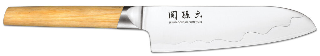 The blades of this eight-piece knife series are composed of two different types of steel: one is the high-gloss polished cutting edge made of extremely sharp VG-Max steel and a satinised back of SUS420J2 steel. The types of steel are developed from aircraft construction technology and are bonded using a special copper brazing technique. The fine bonding line thus created remains as a decorative design feature.