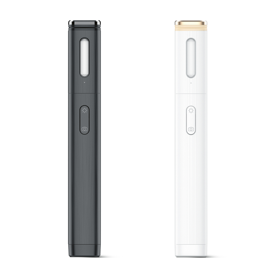 This multifunctional selfie stick has an elongated oval LED lamp at the top. It can function as an additional light when taking photographs, or as a night light. Double clicking the button also turns it into a flashing red emergency light. The telescopic rod is made of a high-quality, anodised aluminium alloy and has excellent damping properties. The advanced battery management system of the elegant, minimalistic stick offers a standby time of up to a year, or enough power for up to 30,000 shots.