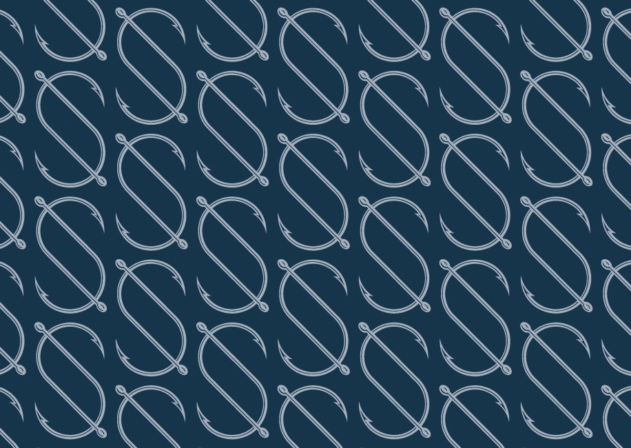 Selfish Club is a fishing club in the country which additionally offers high quality food and accommodation. The club has been positioned as a prestigious haven for a male community. The target was to design a logo that included a visual communication system as well as to develop the further promotion of the club. The logo, two crossed metal fishhooks, conveys an impression of strength to represent the pro-ject’s main idea of a strong community. Calm dark colours resemble water surfaces and fish scales. Light colours of a sandy shore and wood were added to the palette for natural contrast.