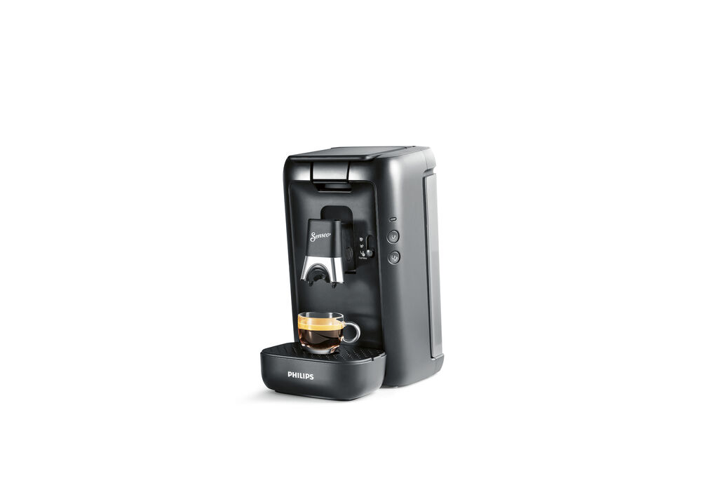 For home or office use, the Senseo Maestro is a compact coffee pod machine. The multi-stage IntenseBrew technology is ideal for making long or intense espressos with a rich crema. The clear user interface allows several drinks to be prepared at the same time. Individual settings can be saved using the memory function. The harmonious design reflects the sensuality of coffee enjoyment. In addition, the sustainable use of materials, mainly recycled plastic, is exemplary, said the jury.