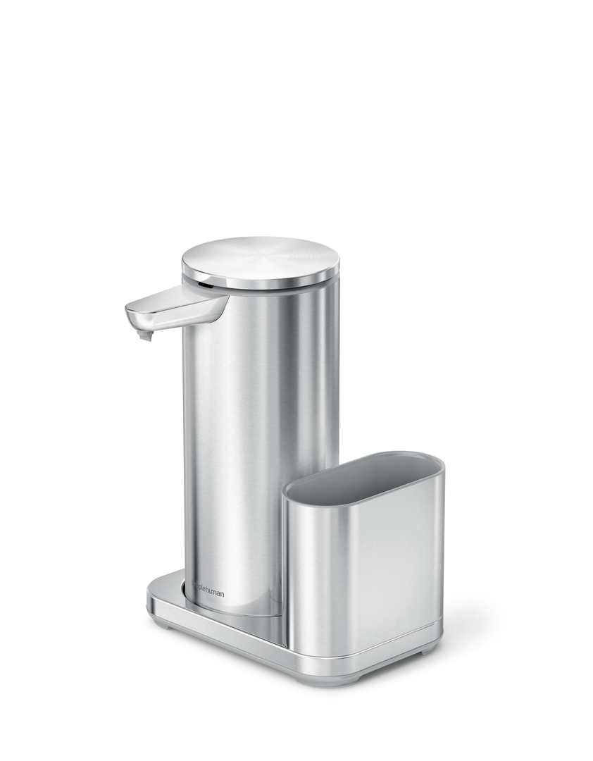 This sink accessory is made of high-quality stainless steel and includes a generous sensor dispenser for liquid soaps (414 ml) and a tray with a sponge caddy. The contactless soap dispenser ensures hygiene, especially in the kitchen. Features such as a clog-proof tubing pump and a silicone valve to prevent drips also make it easier to use. A wide funnel opening facilitates refilling, and the rechargeable battery makes for a long service life.