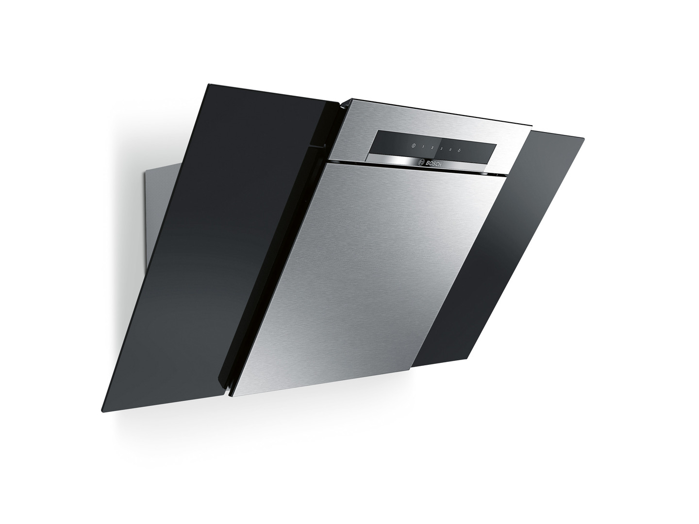 The interplay of dark glass surfaces and brushed stainless steel that characterises the reduced appearance of this inclined hood ensures a high-quality impression. A significant design element is the shiny brand lettering which is located easily readable in the middle of the appliance and appears as a design feature on all products of the series.