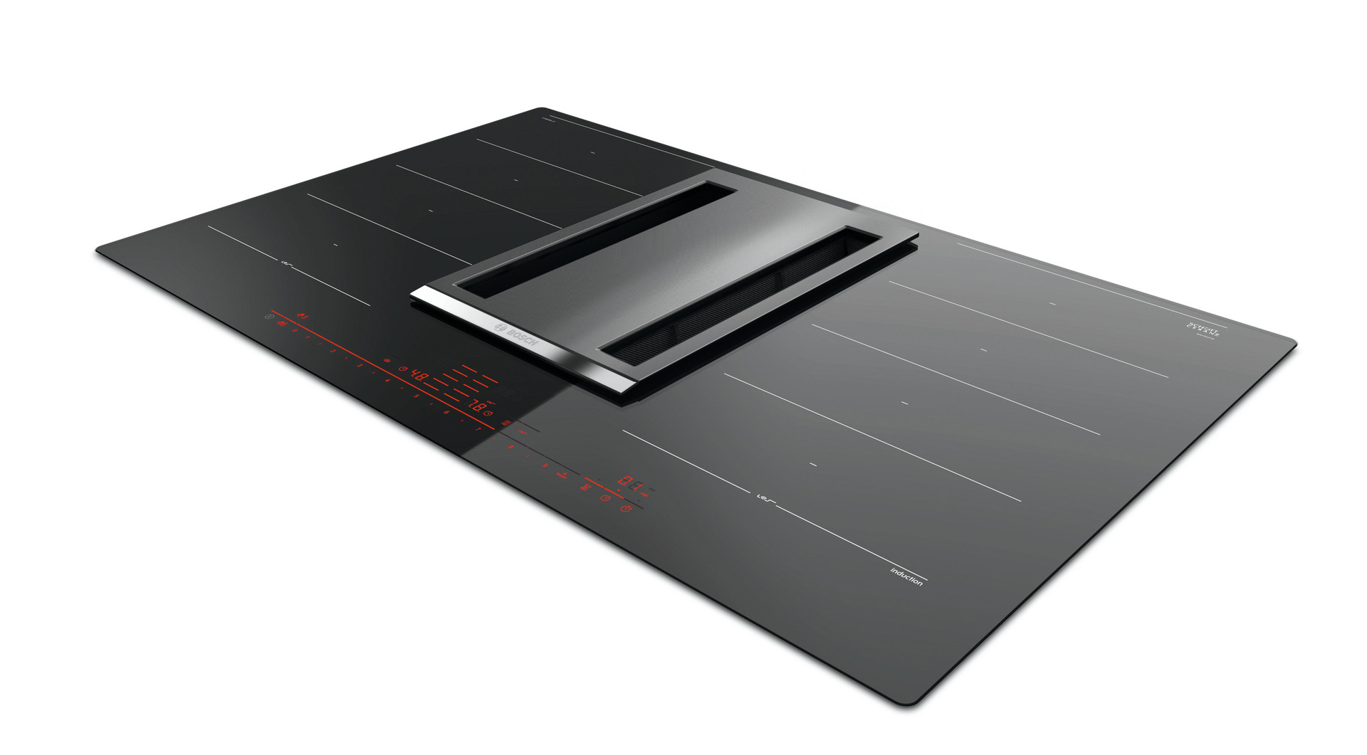 The practical value of this induction hob is enhanced by the integrated extractor. A clear design contributes to the high-quality overall impression.