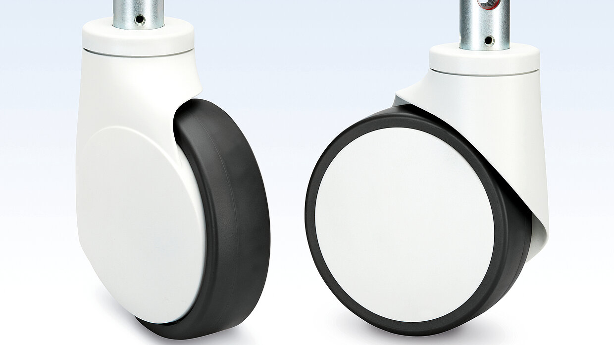 In this institutional castors, tech- nical expertise has been translated into a sophisticated design concept, which ensures high safety during use.
