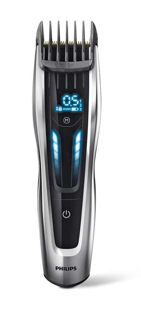 This hairclipper immediately attracts attention owing to its ergonomic construction. The digital display in subtle blue is both user-friendly and modern. The desired length is selected from 400 options via a digital swipe feature. An intelligent memory recalls the last cutting length and three other settings. Cutting elements made of stainless steel ensure reliable results and make the product very durable.