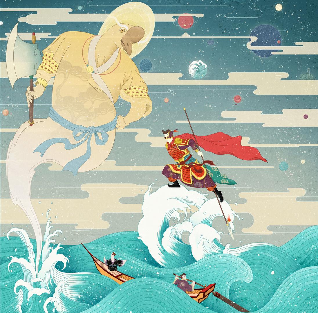 This is a series specially designed for a catering brand. Three works were created to express the energetic growth and vigorous vitality of a goose. Essentially, they tell the story of the goose, from birth to its time as an apprentice, before it finally defeats many villains and becomes the general of the geese. Since this is a poster for a Chinese catering brand, the design needed to ensure that the images have a clean and hygienic appearance. This led to the use of mild, clean and delicate colours and lines, combined with traditional Chinese elements, such as classic martial arts movements.