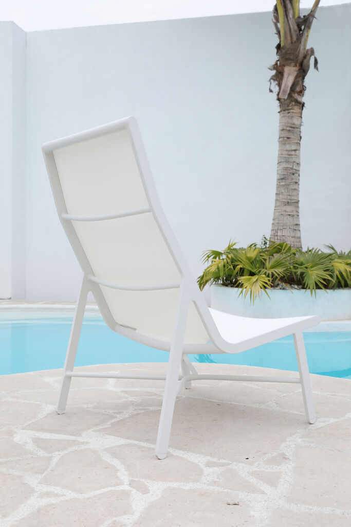 The lounge chair and stool in the Series of Crescent range are suitable for indoor and outdoor use and are characterised by a minimalist, crescent-shaped design that offers excellent seating comfort. Interchangeable mesh covers, ropes and powder coatings allow for individual colour combinations and are easy to change thanks to a practical plug-in connection with plastic pins. The robust aluminium frame, the modular design and the use of weather-resistant materials extend the service life.