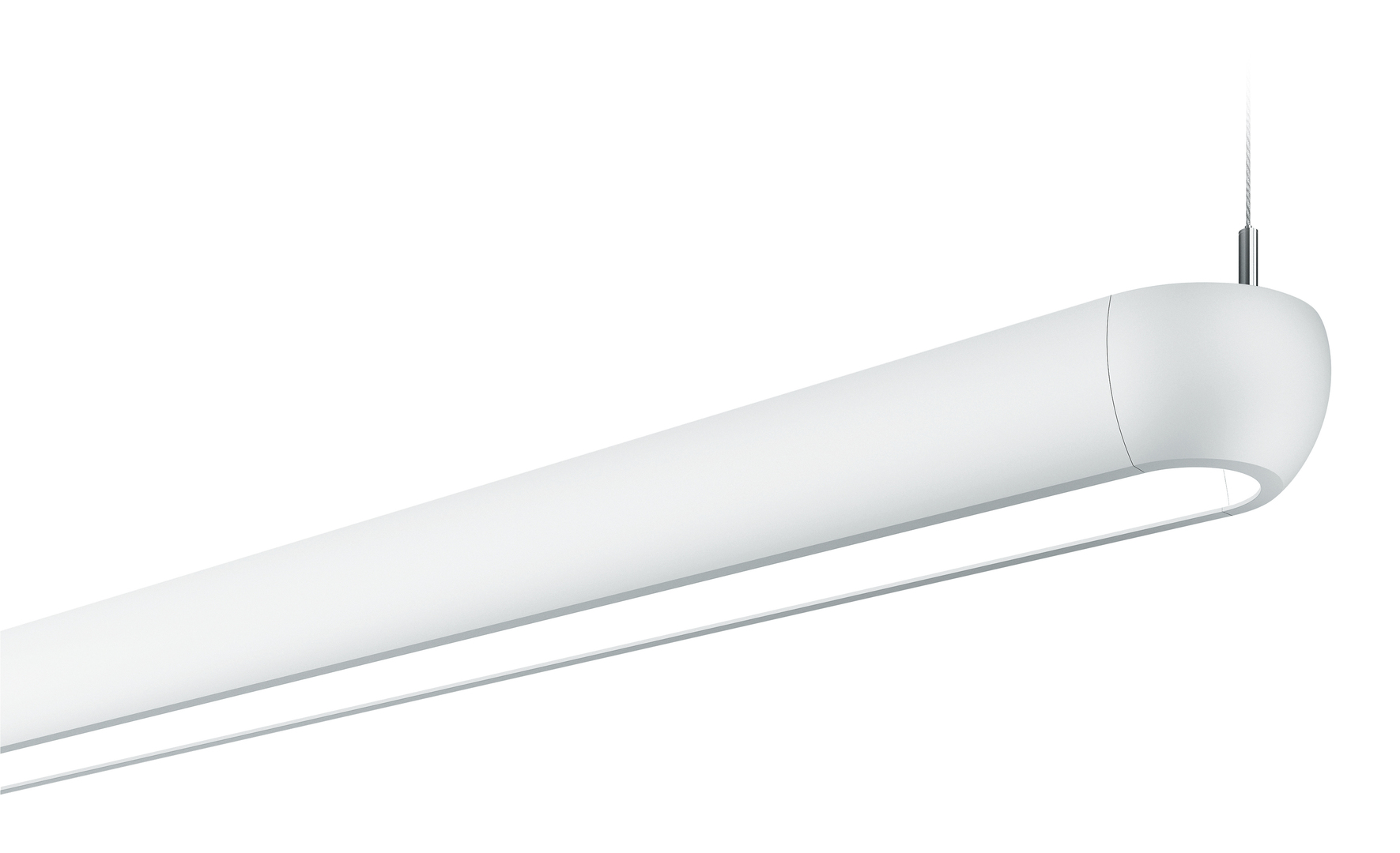 The design of this lensless pendant luminaire is focused on an open optical system which provides not only glare-free direct light but also extraordinarily pleasant room lighting. The balanced distribution of direct and indirect light is based on the precise alignment of LED emitters in combination with light reflective surfaces. The extruded aluminium housing and the two die-cast aluminium end caps together form a luminaire body with a slim opening.