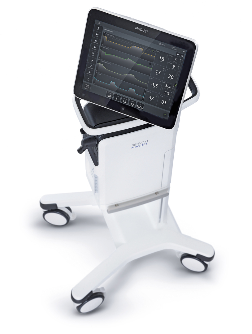 The SERVO-U medical ventilator was developed to ensure safety of use for individualised patient treatment. Context-based guidance on the touchscreen and suggestions with conveniently positioned shortcut keys help the medical practitioner to make well-founded decisions. The device can be mounted in many different ways and, due to its ergonomic design, may also be positioned on either side of the patient’s bed.