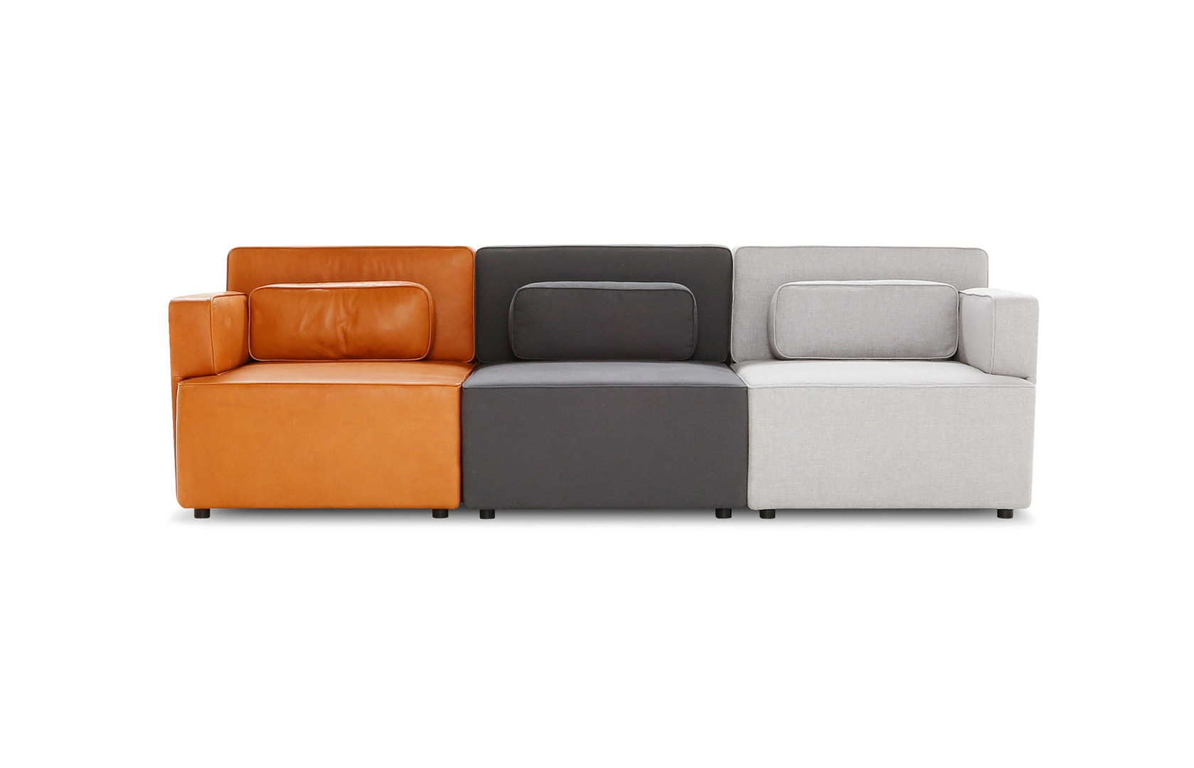 The harmonious basic form of this sofa is defined by four elements. Everything else can be assembled freely: arm and back rests, seats, cushions and covers, as well as colours. The balanced proportions lend themselves to classic combinations just as much as to individual room concepts. Assembly is simple and self-explanatory: the back and arm rests are attached with screws and the seats are connected with Velcro.