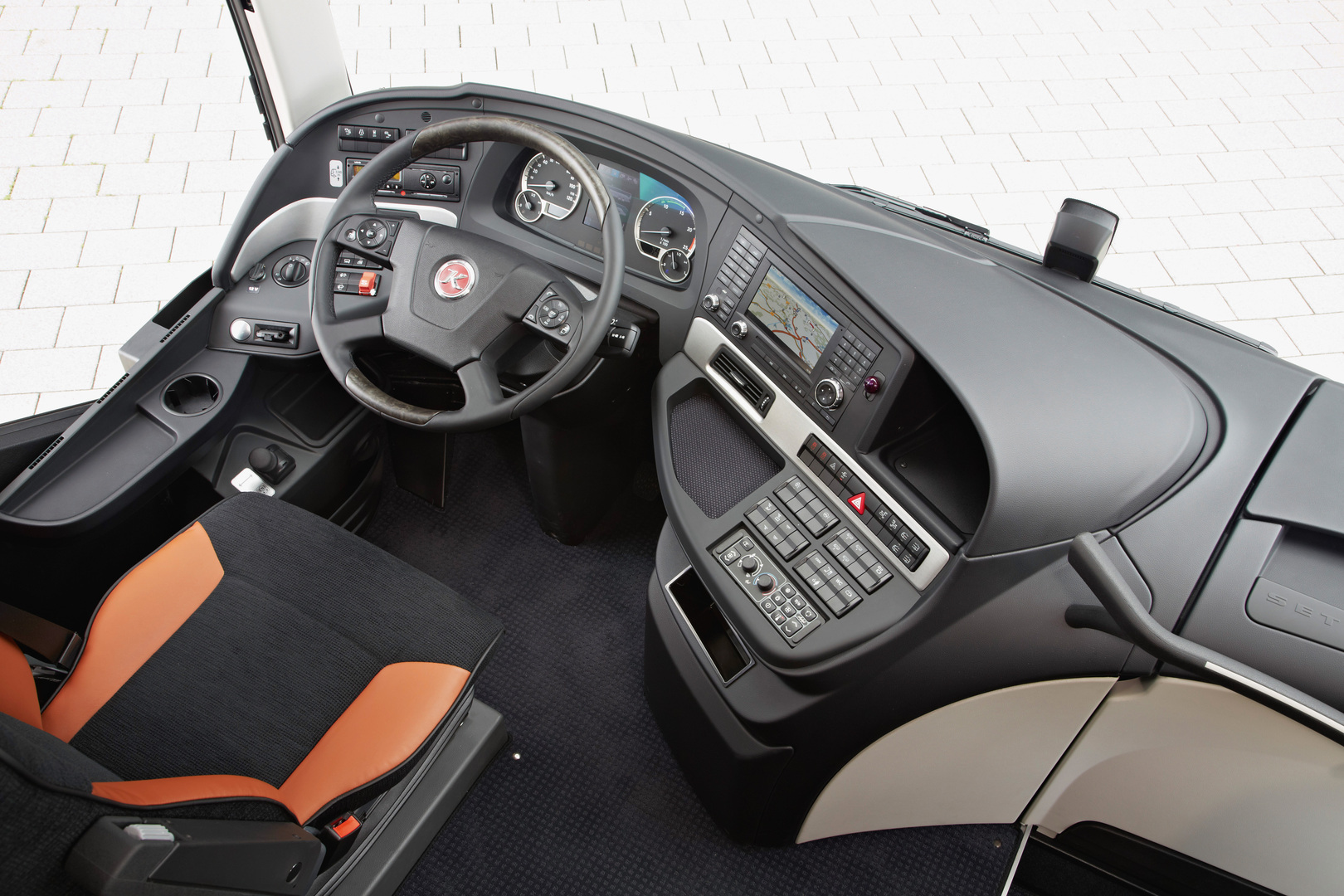 The outside of the ComfortClass 500 impresses with a soft, flowing beltline encircling the vehicle. The front area is characterised by a friendly, powerful face, while the soft lines of the exterior carry over into the cockpit and the passenger compartment. The interplay of individual equipment details fosters a harmonious union of comfort and quality, form and colour.